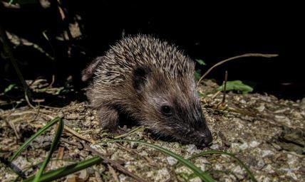 Keywords: hedgehog hiding garden green wild cute grass brown mammal nature animal hedge hide watchful tiny daytime natural environment