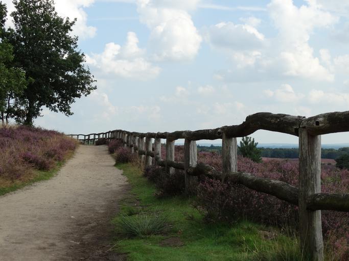Keywords: hei heide flowering heather fence landscape path netherlands