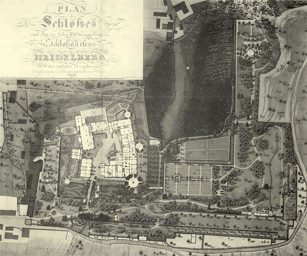 Keywords: Heidelberger Schloss von Johann Metzger 1826.jpg Description castle of Heidelberg Germany Uploaded by --Immanuel Giel 11 20 26 April 2006 UTC PD-old Hortus Palatinus Park plans