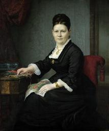 | Keywords: Heinrich Sperling Bildnis einer bügerlichen Dame mit Stickarbeit.jpg Painting Creator Heinrich Sperling Bildnis einer bürgerlichen Dame im schwarzen Taftkleid; mit Stickzeug im Boudoir an einem kleinen Tisch sitzend Öl auf Leinwand 120 5 x 100 5 cm Rechts unten signiert H Sperling Um 1905 c 1905 Oil on canvas cm 120 5 100 5 unknown http //www bassenge com other versions PD-old-100 DEFAULTSORT 1905c; unknown woman by Sperling Images from Galerie Bassenge Heinrich Sperling 20th-century portrait paintings location missing 20th-century portrait paintings of unidentified women 1905 oil on canvas paintings Portrait 1905 portrait paintings 20th-century oil portraits of sitting women at three-quarter length Chairs in portrait paintings Embroidery in art Females with black dresses in art 19th-century portrait paintings in interiors Tables in portrait paintings Tassels in portrait paintings Women with necklaces in art Females with bracelets in art Females with earrings in art 1900s dresses Taffeta |