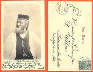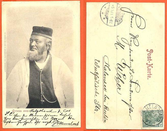 | Keywords: Helgo mann01.jpg en Man from Heligoland northsea de Heloländer mit Kappe und Uhrkette Ansichtskarte Knackstedt Näther Hamburg 1901 PD-old Postcards of Heligoland Postcards of people in Germany 1901 postcards of Germany Schleswig-Holstein in the 1900s Postcards of men Knackstedt Näther Stamps of the German Empire |