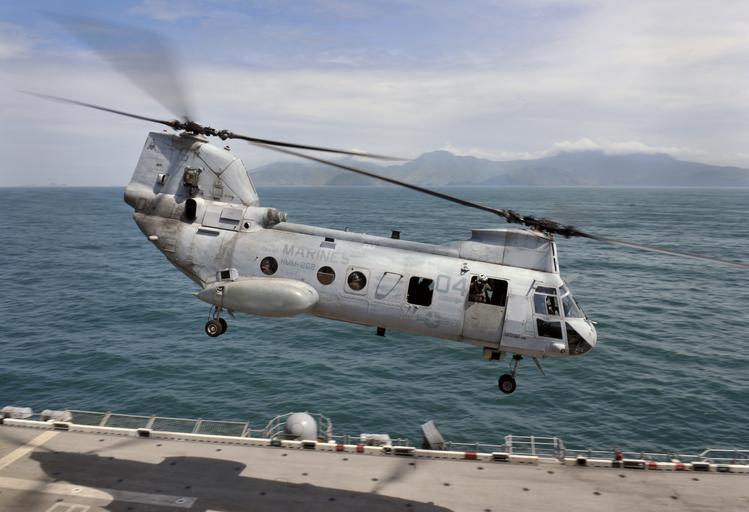Keywords: Helicopters take off from USS Bonhomme Richard during PHIBLEX 121005-N-KB563-199.jpg en A CH-46 Sea Knight helicopter assigned to the Flying Tigers of Marine Medium Helicopter Squadron HMM 262 launches from the flight deck of the amphibious assault ship USS Bonhomme Richard LHD 6 during the start of Amphibious Landing Exercise PHIBLEX PHIBLEX is an annual bilateral exercise held in conjunction with the Armed Forces of the Philippines and is designed to improve interoperability increase readiness and develop professional and personal relationships between U S and Philippine forces The U S Navy is constantly deployed to preserve peace protect commerce and deter aggression through forward presence Join the conversation on social media using warfighting U S Navy photo by Mass Communication Specialist 2nd Class Michael Russell 2012-10-05 Petty Officer 2nd Class Michael Russell https //www dvidshub net/image/719157 121005-N-KB563-199 2012-10-11 02 06 SUBIC BAY PH PD-USGov-Military-Navy CH-46 Sea Knight USS Bonhomme Richard LHD-6 Images from DoD uploaded by Fæ |