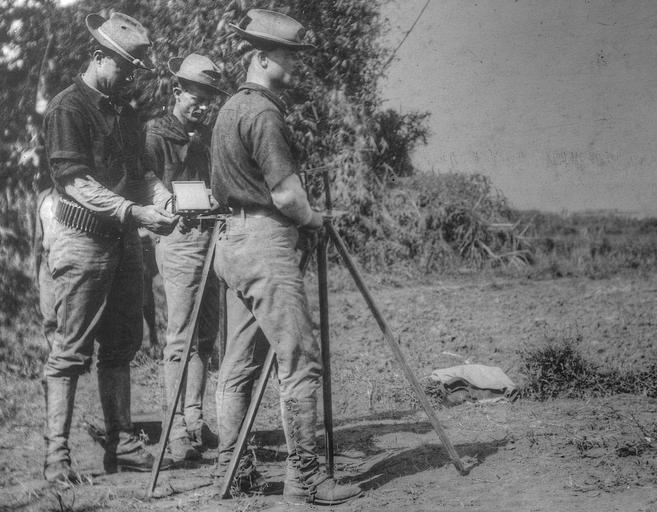 | Keywords: heliograph heliographe heliógrafo signaller signallers spanish american war spanishamericanwar signal service signalservice us signal service ussignalservice phillipines mindanao 1898 blackandwhite monochrome outdoor black and white This photo is of US Army Signal Service personnel, taken in 1898 on Mindanao Island on the Phillipines. They are operating a US Signal Service heliograph, a device to transmit messages by Morse or Myer code by reflecting sunlight at the target using the 4.5 inch square mirrors on the rear tripod, and modulating it with the the dual-bladed shutter on the right hand tripod. The dual-bladed shutter was invented in 1892 by Captain C.E. Kilbourne, U.S. Signal Corps, and replaced the single leaf "drawbridge style" shutter of 1888. This is a reprocessed crop from the original photograph held at the University of Michigan Special Collections. I obtained it from Wikimedia Commons (which has a hyperlink to the University of Michigan record) here: commons.wikimedia.org/wiki/File:Heliographing_from_Pehtud... I cropped it, converted it to black and white, and contrast enhanced it. If the law considers my actions to have given my copyright to this modified photo, I hereby release that copyright to the public domain, as indicated by the Flickr CC0 copyright license. I make no claim of copyright on this, you can do with it what your laws allow. As a pre-1923 photo, it should be in the public domain in the United States. You can, of course, obtain the full version from Wikimedia or the University of Michigan, as I did. If you wish to start with my version, you may want the high-resolution version here: www.flickr.com/photos/signalmirror/8324614725/sizes/o/ This photo is of US Army Signal Service personnel, taken in 1898 on Mindanao Island on the Phillipines. They are operating a US Signal Service heliograph, a device to transmit messages by Morse or Myer code by reflecting sunlight at the target using the 4.5 inch square mirrors on the rear tripod, and modulating it with the the dual-bladed shutter on the right hand tripod. The dual-bladed shutter was invented in 1892 by Captain C.E. Kilbourne, U.S. Signal Corps, and replaced the single leaf "drawbridge style" shutter of 1888. This is a reprocessed crop from the original photograph held at the University of Michigan Special Collections. I obtained it from Wikimedia Commons (which has a hyperlink to the University of Michigan record) here: commons.wikimedia.org/wiki/File:Heliographing_from_Pehtud... I cropped it, converted it to black and white, and contrast enhanced it. If the law considers my actions to have given my copyright to this modified photo, I hereby release that copyright to the public domain, as indicated by the Flickr CC0 copyright license. I make no claim of copyright on this, you can do with it what your laws allow. As a pre-1923 photo, it should be in the public domain in the United States. You can, of course, obtain the full version from Wikimedia or the University of Michigan, as I did. If you wish to start with my version, you may want the high-resolution version here: www.flickr.com/photos/signalmirror/8324614725/sizes/o/ |