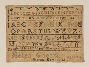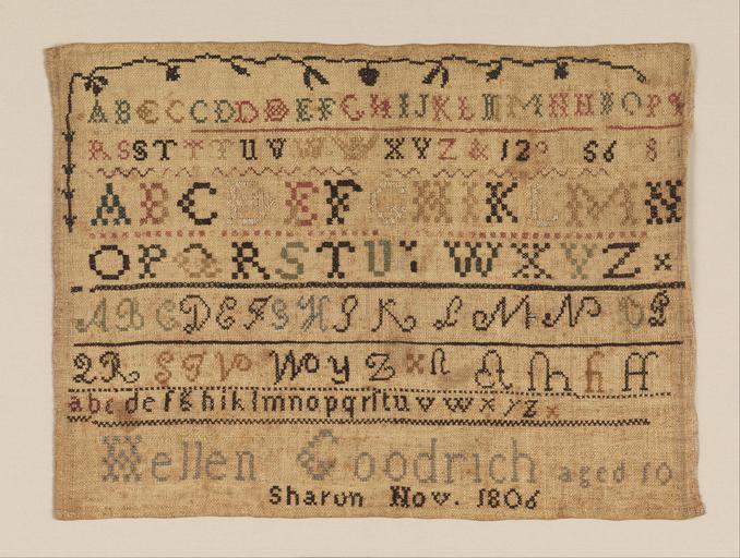 Keywords: Hellen Goodrich - Sampler - Google Art Project.jpg Hellen 6855229 Goodrich /collection/cooper-hewitt-national-design-museum/artwork/sampler-hellen-goodrich/6839809/ 155678 Hellen Goodrich /artist/hellen-goodrich/12699251/ 12699251 /collection/cooper-hewitt-national-design-museum/ Cooper-Hewitt National Design Museum 3644669 http //www cooperhewitt org/ /collection/cooper-hewitt-national-design-museum/artwork/sampler-hellen-goodrich/6839809/ 1806 1806 Medium silk embroidery on linen foundationTechnique embroidered in counted cross and star stitches on plain weave foundation Ex coll Fraser-Martin 6839809 False 1806 1976-100-60 http //collection cooperhewitt org/view/objects/asitem/id/155678 Gift of Anonymous Donor from the Fraser/Martin Collection Sampler 1800 1810 1806 False 1 32299741602067 Object sampler-hellen-goodrich Sampler s H x W 27 x 35 6 cm 10 5/8 x 14 in Hellen Goodrich aged 10 Sharon Nov 1806 Medium silk embroidery on linen foundationTechnique embroidered in counted cross and star stitches on plain weave foundation Ex coll Fraser-Martin special url_id rwF64S4md6mhVQ PD-old-100-1923 Google Art Project works by Hellen Goodrich Textiles in the Cooper “Hewitt Smithsonian Design Museum 1800s samplers Google Art Project works in Cooper-Hewitt Smithsonian Design Museum 1806 works |