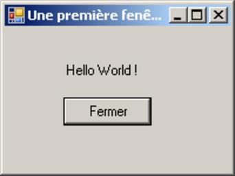 Keywords: Helloworld csharp.png CSharp hello world own 2006-10-15 User DavidL public domain Screenshots of Windows software C Sharp Hello World dialog boxes