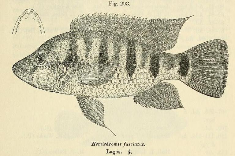 | Keywords: Hemichromis fasciatus.jpg de Hemichromis fasciatus 1915-08-11 https //archive org/stream/catalogueoffresh03brit page/60/mode/thumb Catalogue of the fresh-water fishes of Africa in the British Museum Natural History Volume 3 1915 Boulenger George Albert 1858-1937 other versions PD-old-70-1923 Catalogue of the fresh-water fishes of Africa in the British Museum Natural History 1915 Hemichromis fasciatus | ||||