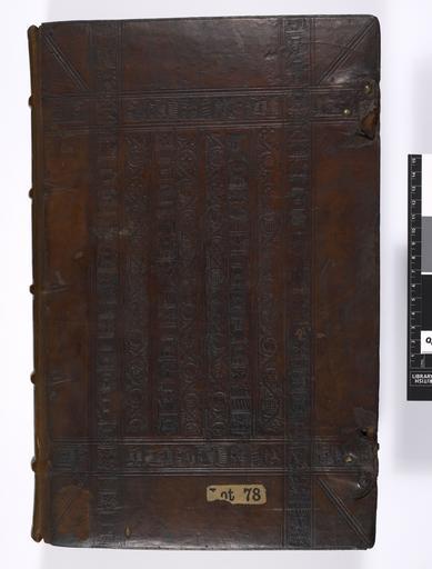 | Keywords: "HENR-ICUS- DE BRACTONE" (16th cent. title), De Legibus et Consuetudinibus Angliae. - Upper cover (Add Ms 41258).jpg Style Panel design; Caption Upper cover; Colour Brown; Edge Unspecified exhibition history Decorative Technique Tooled in blind; Cover Material Goatskin includes morocco turkey etc Binding of bevelled oak boards covered with brown leather 16th cent Intersecting vertical and horizontal blind rolls form a large central panel rectangular in shape filled with impressions of the same roll object history Text 16c; Unspecified; Unspecified object type Cc-zero place of creation Binding England place of discovery May be RPa 1 HEd 1 in Oldham English blind stamped bindings Cambridge 949 British Library image http //www bl uk/catalogues/bookbindings/LargeImage aspx RecordId 020-000016695 ImageId ImageId 55904 Copyright BL HENRICUS DE BRACTONE 16th cent title De Legibus et Consuetudinibus Angliae Uploaded with GWToolset HENRICUS DE BRACTONE 16th cent title De Legibus et Consuetudinibus Angliae - Upper cover Add Ms 41258 http //www webarchive org uk/bldatasets/bindings/Add41258 jpg Bookbinding 16th-century bookbinding British Library Bookbindings |
