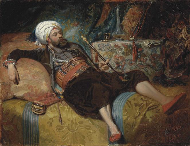| View Original: | Henri_Charles_Antoine_Baron_-_Un_Turc_fume_couché_(1844).jpg (3200x2472) | |||