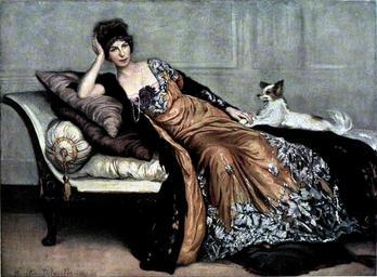 | Keywords: Henry Caro-Delvaille - Portrait de Madame Simone.jpg Portrait of female Madame Simone 1908 Oil on canvas cm 140 189 Institution Musée d'art moderne et contemporain de Strasbourg http //www archive org/stream/diekunstmonatshe23mnuoft page/n101/mode/2up 00160000807 Henry Caro-Delvaille signature bottom left other versions PD-old-70 DEFAULTSORT 1908; Madame Simone Henry Caro-Delvaille Paintings in the Musée d'art moderne et contemporain de Strasbourg 1908 oil on canvas paintings in France Portrait 1908 portrait paintings from France 20th-century oil portraits of sitting women at full length 20th-century paintings in Alsace 20th-century portrait paintings in France 20th-century portrait paintings with dogs Couches in portrait paintings Cushions in portrait paintings Portrait paintings of recumbent women Portrait paintings of women with dogs Tassels in portrait paintings |