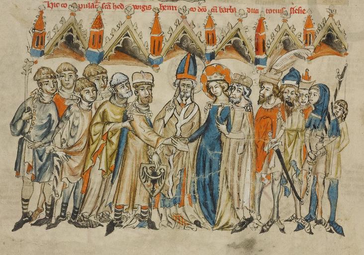 | Keywords: Henry I the Bearded wedding.jpg Ślub Henryka I Brodatego z Jadwigą z Andechs według ikonografii z XIV w Henry I the Bearded marries Hedwig of Andechs XIV century image century 14 PD-old Original upload log page pl wikipedia Obraz4 jpg 2004-09-03 15 08 Zuber 620×441× 108412 bytes <nowiki></nowiki> History of Wrocław Henry I of Poland in miniature 12th-century births 1238 deaths MS LUDWIG XI 7 Getty museum - Hedwig Codex Google Art Project works by Court workshop of Duke Ludwig I the Fair Hedwig of Andechs Marriage in medieval miniature |