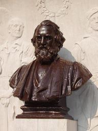 | Keywords: Henry Wadsworth Longfellow memorial, Cambridge, MA - bust.JPG Henry Wadsworth Longfellow Memorial by sculptor Daniel Chester French 1850-1931 Cambridge Massachusetts USA A bust of Longfellow is in the middle To the left are bas relief sculptures of Miles Standish the angel Sandalphon from his Birds of Passage and The Village Blacksmith To the right are The Spanish Student Evangeline holding her Bible and Rosary and Hiawatha This sculpture is now in the public domain as its author died more than 70 years ago Sculptor Daniel Chester French 1850-1931 ; photography by me Daderot Sculpture created in 1913; photograph taken in September 2007 Sculptor Daniel Chester French 1850-1931 ; photography by me Daderot Author died more than 70 years ago - public domain PD-old Henry Wadsworth Longfellow Memorial |