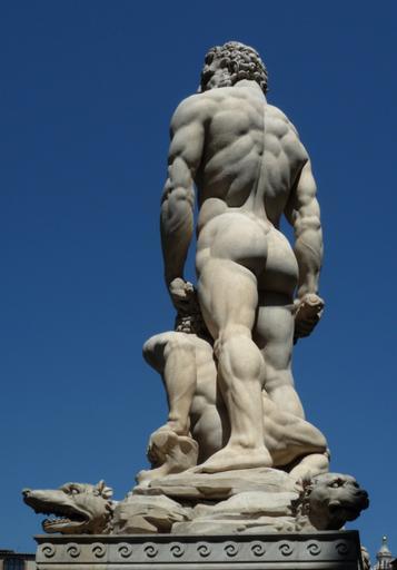 | Keywords: Heracles And Cacus (back) by Baccio Bandinelli.jpg  it Ercole uccide Caco di Baccio Bandinelli 1534 ; piazza della Signoria Firenze di fronte a Palazzo Vecchio Il mito racconta che Ercole dopo aver ucciso il mostro Gerione e avergli sottratto una mandria di buoi si mise a dormire vicino alla grotta in cui viveva Caco Questi era un mostro figlio di Vulcano il quale approfittò del pisolino di Ercole per rubargli quattro tori e quattro vacche Ma Ercole non la prese bene scoperchiò la grotta di Caco e lo uccise facendo così anche un piacere alla popolazione locale own Aldoaldoz 2009-08-16 Statue of Heracles and Cacus in Florence Taken with Panasonic Lumix DMC-FX37 |