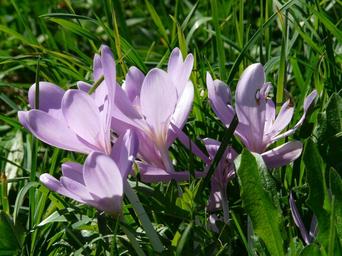 Keywords: herbstzeitlose flower blossom bloom purple autumn timeless colchicum autumnale time lots greenhouse colchicaceae poisonous plant pale pink violet back light light beautiful airy