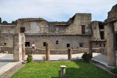 | Keywords: architecture outdoor ruins rampart building "Located in the shadow of Mount Vesuvius, Herculaneum (Italian: Ercolano) was an ancient Roman town destroyed by volcanic pyroclastic flows in 79 AD. Its ruins are located in the commune of Ercolano, Campania, Italy. It is most famous for having been lost, along with Pompeii, Stabiae, Oplontis and the neighborhood of Monte Bursaccio in Boscoreale, in the eruption of Mount Vesuvius in AD 79 that buried it in superheated pyroclastic material. It is also famous as one of the few ancient cities that can now be seen in almost its original splendor; unlike Pompeii, it was mainly affected by pyroclastic flows, thus preserving the wooden objects such as roof tops, building beams, beds, doors, and even food. Moreover, Herculaneum was a wealthier town than Pompeii, possessing an extraordinary density of fine houses, and far more lavish use of colored marble cladding. The discovery in recent years of some 300 skeletons along the sea shore came as a surprise, as it had been assumed that the town had been evacuated." ~Wikipedia "Located in the shadow of Mount Vesuvius, Herculaneum (Italian: Ercolano) was an ancient Roman town destroyed by volcanic pyroclastic flows in 79 AD. Its ruins are located in the commune of Ercolano, Campania, Italy. It is most famous for having been lost, along with Pompeii, Stabiae, Oplontis and the neighborhood of Monte Bursaccio in Boscoreale, in the eruption of Mount Vesuvius in AD 79 that buried it in superheated pyroclastic material. It is also famous as one of the few ancient cities that can now be seen in almost its original splendor; unlike Pompeii, it was mainly affected by pyroclastic flows, thus preserving the wooden objects such as roof tops, building beams, beds, doors, and even food. Moreover, Herculaneum was a wealthier town than Pompeii, possessing an extraordinary density of fine houses, and far more lavish use of colored marble cladding. The discovery in recent years of some 300 skeletons along the sea shore came as a surprise, as it had been assumed that the town had been evacuated." ~Wikipedia |