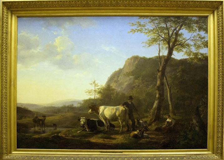 Keywords: Herder en herderin met vee in berglandschap, 1826.jpg Pásztor és pásztorlány hegyes tájon nl Herder en herderin met vee in berglandschap Oil on canvas Haarlem Teylers Museum own ; Photo by Szilas in the Teylers Museum 1826 creator Hendrikus van de Sande Bakhuyzen PD-old-100 Other versions Teylers Eerste Schilderijenzaal Hendrikus van de Sande Bakhuyzen |