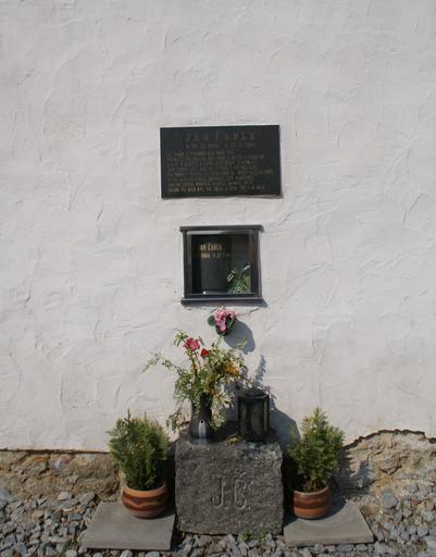 | Keywords: Heřmaň Jan Čarek 01.JPG en Heřmaň a village in Písek district Czech Republic The last resting place of the Czech poet Jan Čarek in the church wall cs Obec Heřmaň okres Písek Česká republika místo odpočinku básníka Jana Čarka ve zdi kostela own Feťour 2011-04-29 Church of Saint Giles Heřmaň Cemeteries in Písek District Jan Čarek |