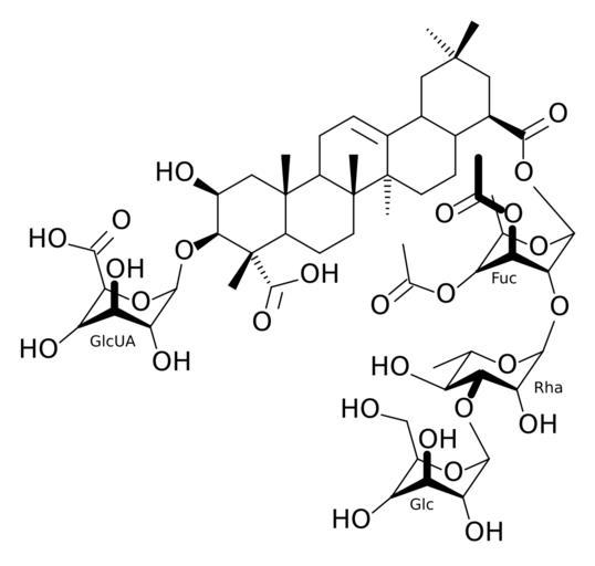 | Keywords: Herniaria Saponin I.svg Saponin glycoside in Herniaria glabra created with bkchem+inkscape Source of information Anwer Basha Viqar U Ahmad Spectroscopic Data of Saponins CRC Press 2000 ISBN 0849394910 2006-07-17 own assumed Ayacop Saponines |