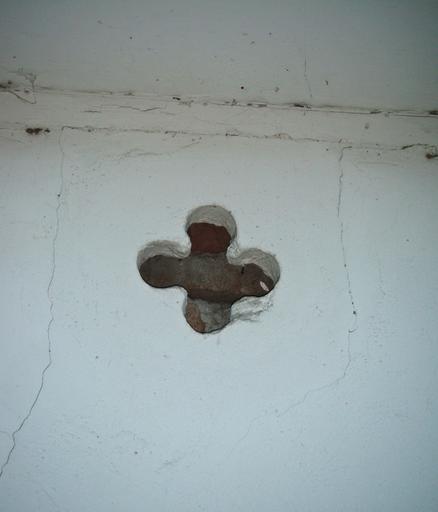 | Keywords: Hertlingshausen Klosterhof Spolie 1a.JPG de Hertlingshausen Klosterhofstraße 5 Spolie vom Kloster Fensterluke aus Sandstein in Form eines griechischen Kreuzes überputzt und gestrichen 29 Dezember 2013 own Altera levatur Hertlingshausen Cc-zero |