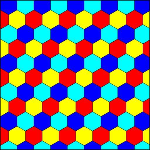 Keywords: Hexagonal tiling 4-colors.svg Hexagonal tiling own 2014-02-23 Life of Riley Basis This file is based upon and is a vector version of File Hexagonal tiling 4-colors png by User Tomruen PNG Basis 180px Remarks valid SVG Inkscape-hand Order-3 hexagonal tiling Blue red yellow |