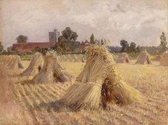 | Keywords: Heywood Hardy - Corn Stooks by Bray Church - Google Art Project.jpg 1843 1933 Heywood male 2343547 Hardy British 1843 - 1933 /collection/yale-center-for-british-art/artwork/corn-stooks-by-bray-church-heywood-hardy/2332536/ Heywood Hardy Artist /artist/heywood-hardy/4125702/ 4125702 /collection/yale-center-for-british-art/ Yale Center for British Art 2305845 http //britishart yale edu/ 2/23/2012 9 12 54 PM /collection/yale-center-for-british-art/artwork/corn-stooks-by-bray-church-heywood-hardy/2332536/ 1872 1872 sky perspective agriculture corn church farmland trees buildings landscape Oil on paper laid on board 203 2332536 False 1872 3/24/2012 11 39 47 AM YCBA/lido-TMS-1308 http //collections britishart yale edu/vufind/Record/1666099 Yale Center for British Art Paul Mellon Collection painting 1870 1880 London Creation w279 x h203 cm 1872 False 1 34383202099738 Item corn-stooks-by-bray-church-heywood-hardy Corn Stooks by Bray Church c 279 No inscription Inscription _Signed_and_Dated Signed lower left H Hardy Not on View Oil on paper laid on board sky perspective agriculture corn church farmland trees buildings landscape special url_id 9wGOZweT_0KccA 1933 Heywood Hardy Google Art Project works by Heywood Hardy 19th-century paintings in the Yale Center for British Art Paintings of wheat fields Rural landscape paintings Landscape paintings of England Berkshire in art Oil on paper Corn shocks |