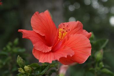 Keywords: hibiscus flower coral pink floral tropical summer plant blossom hawaii bloom exotic beautiful stamen nature