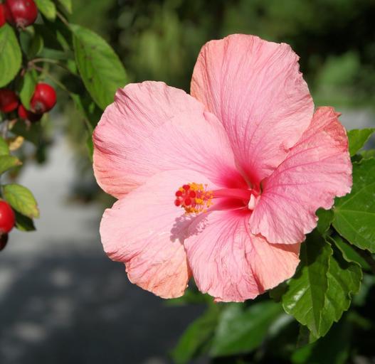 Keywords: hibiscus flower floral hibiscus rosa sinensis malvaceae petals mallow pink peach ornamental plant stamens pistil pollen chinese rose plant shrub