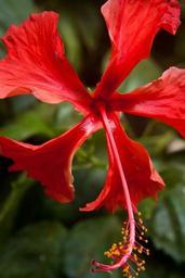 Keywords: hibiscus flower red tropical bloom stamen petals macro floral blossom exotic beautiful blooming hawaiian flora