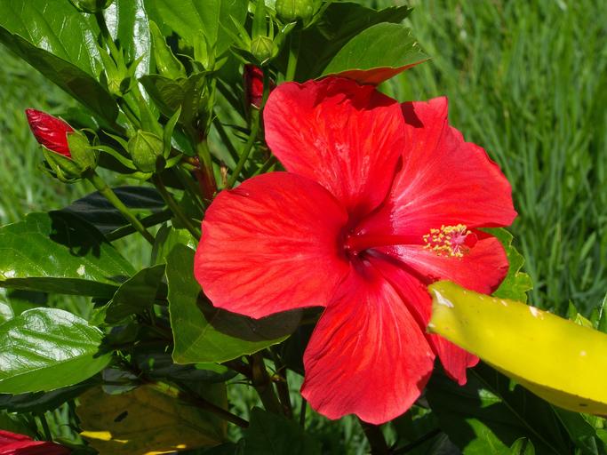Keywords: hibiscus red flower garden wake up life passion