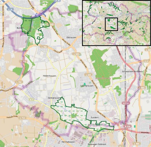 | Keywords: Hiddenhausen - nature reserves.png Nature reserves in Hiddenhausen - overview map<br/>Number and borders of nature reserves are subject to frequent change In order to facilitate reproduction of this map from openstreetmap the following data is stored here <br/> export boundaries north 52 185; west 8 585; east 8 685; south 52 125; mapnik svg scale 1 50 000<br/> nature reserve boundary stroke weight 3 5; <br/>nature reserve stroke color R 5 G 102 B 36; <br/>district border stroke weight 20 Naturschutzgebiete in Hiddenhausen - Ã bersichtskarte Hiddenhausen - vue d'ensemble Own based on http //www openstreetmap org/ Open Street Map 2011-05-05 Hagar66 Maps of Hiddenhausen Cc-zero |