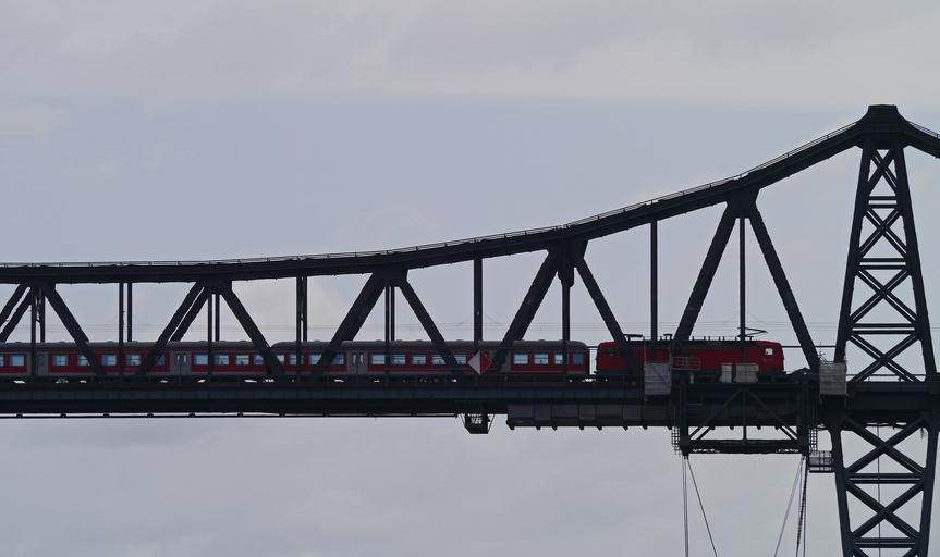 Keywords: high bridge rendsburg regional train steel structure sh mecklenburg north america channel crossing railway scandinavia br 112 nok electric locomotive transport deutsche bahn transporter bridge