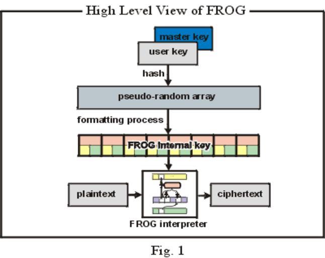 Keywords: High level view of FROG.PNG Upload from http //en wikipedia org/wiki/Image High_level_view_of_FROG gif en wikipedia org in Public domain High level block graph of the cipher FROG 2006-04-12 own assumed Dr Juzam Cryptography diagrams