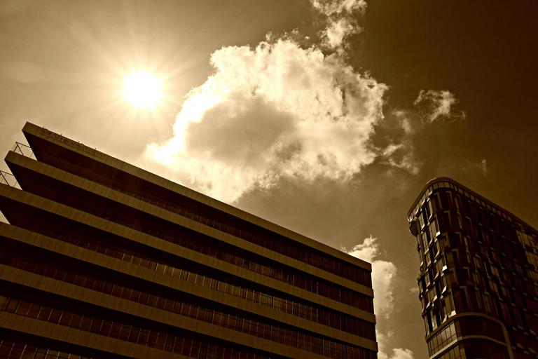 Keywords: high rise tower architecture sky silhouette urban sun sunlight sunrays