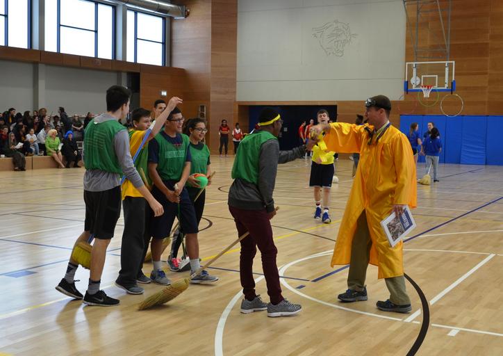 Keywords: court game sport indoor For one week, Ansbach Middle/High School was turned into "Hogwarts School of Witchcraft and Wizardry," based on J.K Rowling's Harry Potter books. The highlight and culmination of the week-long project, hosted as part of "Read across America Week," was a Quidditch tournament and the award ceremony for the house cup. (U.S. Army photos: Bianca Sowders, USAG Ansbach Public Affairs) For one week, Ansbach Middle/High School was turned into "Hogwarts School of Witchcraft and Wizardry," based on J.K Rowling's Harry Potter books. The highlight and culmination of the week-long project, hosted as part of "Read across America Week," was a Quidditch tournament and the award ceremony for the house cup. (U.S. Army photos: Bianca Sowders, USAG Ansbach Public Affairs) |