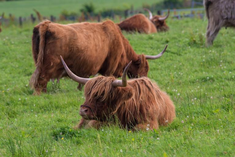 Keywords: highland-rinder beef cow scotland highlands landscape hof fields hairy hair cattle grass field agriculture mammal race horns fur bull horned animal world brown in the free
