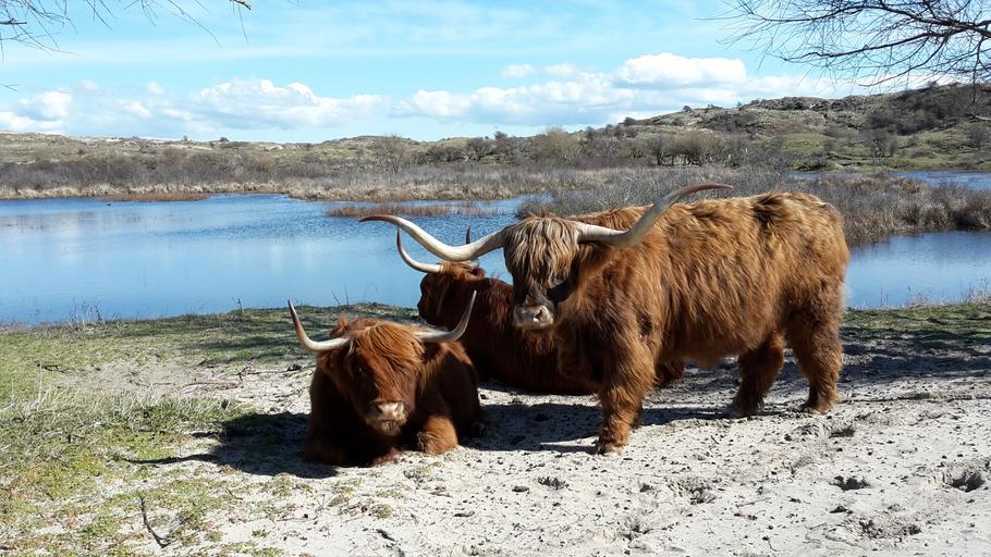 Keywords: highlanders dunes spring nature dutch landscape blue sky more