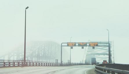 Keywords: highway roads guard rails bridge lamp posts signs trucks