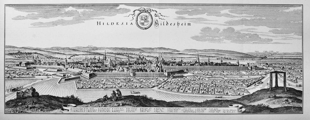 Keywords: Hildesheim 2 (Merian).jpg Artwork creator Matthäus Merian b 1653 copper engraving object history exhibition history credit line la de accession number Topographia Saxoniae Inferioris Frankfurt am Main 1653 PD-100 Engravings of Topographia Saxoniae Inferioris Hildesheim in art |