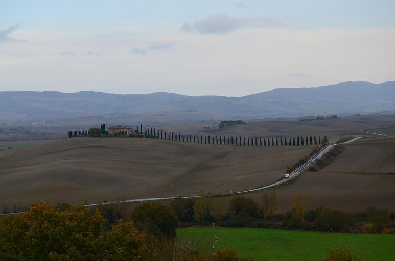 Keywords: hills tuscany italy clouds sky day summer landscape land mountains farm upland beauty the terrain outdoors scenic journey serenity the way road houses