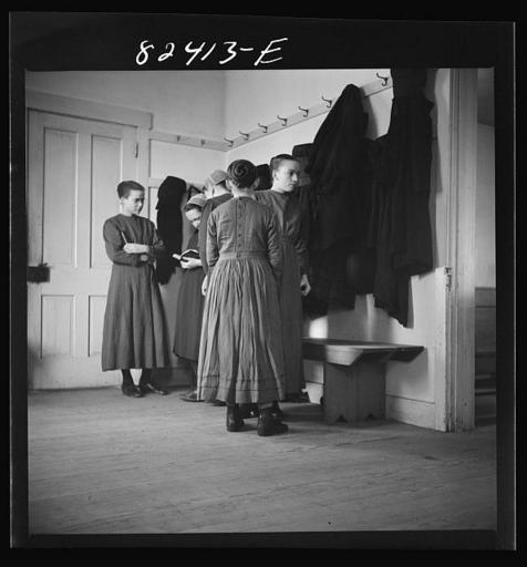 | Keywords: Hinkletown, Pennsylvania (vicinity). Mennonite girls.jpg fr Hinkletown Pennsylvania vicinity Mennonite girls waiting for Deutsch school to begin in Mennonite church 1942 http //www loc gov/pictures/item/fsa2000053446/PP/ Library of Congress U S Farm Security Administration/Office of War Information Black White Photographs other versions PD-USGov Uploaded with UploadWizard Girls Hinkletown Pennsylvania | ||||