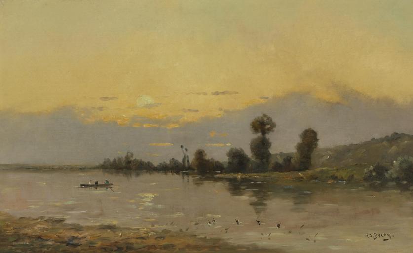 | Keywords: Hippolyte Camille Delpy - Une vue sur le fleuve au coucher du soleil.jpg Artwork Creator Hippolyte Camille Delpy oil panel cm 36 8 61 accession number object history credit line exhibition history H C Delpy lower right signature http //www bonhams com/auctions/20902/lot/1191/ Bonhams San Francisco 18 Mar 2013 lot 1191 PD-old-100 Camille-Hippolyte Delpy Paintings of the Seine 19th-century landscape paintings landscape paintings of France Images from Bonhams | ||||