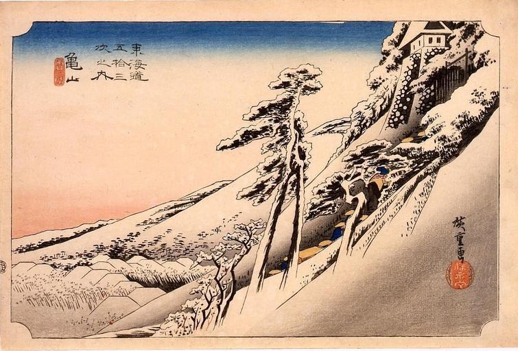 Keywords: Hiroshige-53-Stations-Hoeido-47-Kameyama-Edo-Tokyo-M-01.jpg en Station Kameyama žClear Weather after Snow yukibare 雪晴; variant a; publisher seal HoeidÅ ä¿ æ°¸å ‚ Database of the Edo Tokyo Museum Creator Utagawa Hiroshige ~ 1833/35 PD-old-100 The Fifty-three Stations of the TÅkaidÅ HoeidÅ Edition original prints-variants |