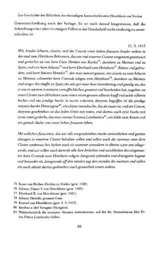 | Keywords: Hirschhorn karmeliter urkunde 1.jpg Hirschhorn karmeliter urkunde_ JPG 2 Urkunde vom 11 März 1413 über eine testamentarische Schenkung an das Karmeliterkloster Hirschhorn Ute Obhof Zur Geschichte der Bibliothek des ehemaligen Karmeliterklosters Hirschhorn am Neckar in Bibliothek und Wissenschaft 27 1994 S 69-70 1413 author PD-old-100 De Wikisource book leaflet 1413 documents 1413 in Germany Deeds | ||||