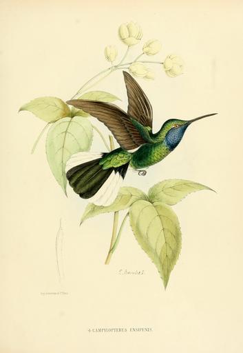Keywords: Histoirenaturell11874muls 0299.jpg Campylopterus ensipennis E Mulsant et Edouard Verreaux Histoire naturelle des oiseaux-mouches ou Colibris constituant la famille des trochilidés Lyon Au Bureau de la Société Linnéenne http //archive org/details/histoirenaturell11874muls Volume 1 1861 http //archive org/stream/histoirenaturell11874muls page/n297/mode/2up 1877 Louis Victor Bevalet 1808- PD-old-100 Histoire naturelle des oiseaux-mouches ou Colibris Louis Bévalet Campylopterus ensipennis |