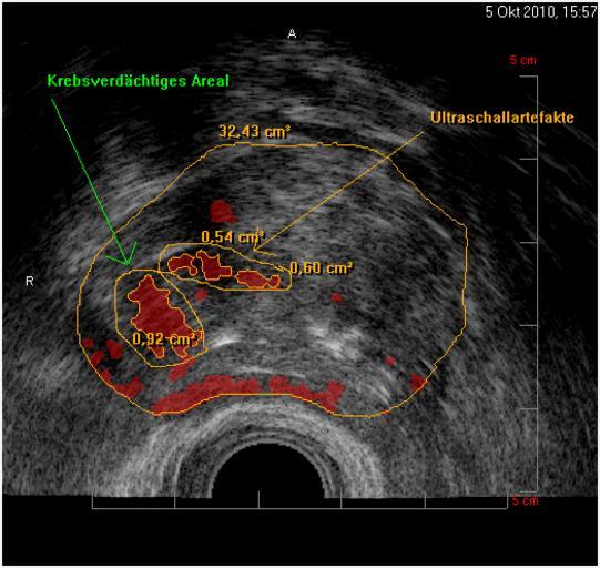 | Keywords: HistoScanning krebsverd.Areale.PNG en HistoScanning image de HistoScanning-Befund rot markiert und gelb umfahren die krebsverdächtigen Areale auf der rechten Seite der Prostata gelegen Klinik für Urologie und Kinderurologie am UK S-H Mitarbeiter der Klinik für Urologie und Kinderurologie am UK S-H 2010-10-05 Der Direktor der Klinik für Urologie und Kinderurologie am UK S-H hat mir persönlich das Bild freigegeben zum Hochladen auf Wikipedia Cc-zero Ultrasound images of prostate | ||||