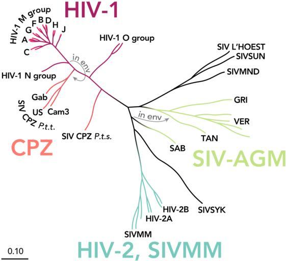 | Keywords: HIV-SIV-phylogenetic-tree1.svg Uploaded with en wp UW marker 2015 04 03 Phylogenetic Tree of the SIV and HIV viruses Viruses Depicted Human HIV-1 M Main group including reference strains from subtypes A-J Group M is responsible for the pandemic HIV-1 O Outlier group most commonly found in West Africa HIV-1 N Not-M Not-O group found in a very small number of individuals in West Africa HIV-1 M group reference strains A_UG U455 A_KE Q2317 B_US JRFL B_US WEAU160 C_ET ETH2220 C_IN 21068 D_ZR NDK D_ZR ELI F_FI FIN6393 F_BE VI850 G_SE SE6165 G_BE DRCBL H_CF 90CF056 H_BE VI997 J_SE SE91733 J_SE SE92809 and CRF01 AE_CF 90CF402 and AE_TH CM240 which are subtype A in pol HIV-1 N group N_CM YBF30 HIV-1 O group O_CM ANT70 O_CM MVP5180 HIV-2 subtypes A and B H2A_DE BEN H2A_SN ST H2B_GH D205 and H2B_CI EHO Simian SIVcpz from chimpanzee Pan troglodytes troglodytes P t t SIVcpz GAB SIVcpz US and SIVcpz Cam3 SIVcpz from chimpanzee Pan troglodytes shweinfuthii P t s SIVcpz ANT SIV African Green Monkey SIVagm Tantalus TAN SIVagm TAN1 Vervet VER SIVagm VERTYO SIVagm VERAGM3 SIVagm VER9063 SIVagm VER155 Grivet GRI SIVagm GRI677 Sabaeus SAB SIVagm SAB1C SIV Sooty Mangaby SIVsm also found in captive macaques SIVsm mac251 SIVsm smm9 SIV L ™hoest SIV LHOEST SIV Mandrill SIV MNDGB1 SIV Sun SIV SUN Based on work by the Theoretical Biology and Biophysics Group Los Alamos National Laboratory http //www hiv lanl gov/content/sequence/HIV/COMPENDIUM/99compendium html http //www hiv lanl gov/content/sequence/HIV/COMPENDIUM/1999/1/intro pdf Newly created version of this PD image https //commons wikimedia org/wiki/File HIV-SIV-phylogenetic-tree svg 2015-04-03 Thomas Splettstoesser http //www scistyle com www scistyle com Image HIV-SIV-phylogenetic-tree png Image HIV-SIV-phylogenetic-tree svg ;Other information This illustration is based on data from the Theoretical Biology and Biophysics Group Los Alamos National Laboratory http //www hiv lanl gov/content/sequence/HIV/COMPENDIUM/99compendium html and this image from the public domain https //commons wikimedia org/wiki/File HIV-SIV-phylogenetic-tree svg cc-zero Human immunodeficiency virus diagrams |
