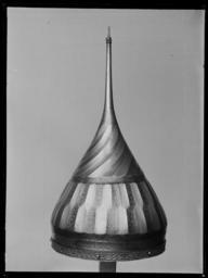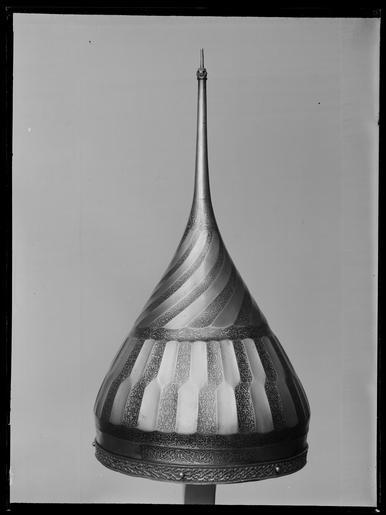 Keywords: Hjälm - Livrustkammaren - 68489.tif LSH artwork sv Spetsig hjälm med oval klocka invändigt klätt med stoppning av rött atlassiden med dekorsömmar i fiskbensmönster Utvändig dekor Nertill en ca 15 mm bred ring av förgylld mässing med höga skarpa kanter och därinnanför pärlstavskantbårder omgivande en bladbård i mitten Ringen fäst med 15 nitar med kulformiga huvuden varav fyra återstår Därovanför två skålade band i stålet b ca 15 mm det övre helt täckt av påslagen rankdekor av guld på det nedre samma dekor i fyra fält med rundade ändar Därovanför smalnar hjälmklockan av uppåt Därpå ett 90 mm brett dekorband sammansatt av ca 15 mm breda stavar i två rader med sicksackformig avgränsning mellan raderna så att den övre raden är halvt förskjuten i förhållande till den nedre På två angränsande stavar i de två raderna dekor som tidigare Därovanför en skålad ring med rankdekor Hjälmklockans övre del dekorerad med 18 spiralvridna skålade fält vartannat med gulddekor Överst en ca 35 mm bred ring med gulddekor avslutad vid spetsskarven Spets l 155 mm d nertill 19 mm och avsmalnande uppåt avslutning upptill med en fasetterad kula med skålade fördjupningar c ca 10 mm och därovanför en något böjd spets l 22 mm Nedanför kulan ett mycket slitet fält med gulddekor original caption hjälm - LRK 20388 Erövringen av Warszawa Stora oredan<br/> Stora oredan Moskwa mid other date century 16 steel - brass - gold size mm 220 största g 1280 size mm 210 minsta size mm 410 LRK Karl XI av Sverige Persisk konst i Sverige 1973 Livrustkammarens basutställning 1978 Gustav II Adolf 350 år efter Lützen 1982-1984 Islamiskt i de kungliga samlingarna 1984 Kungens lockpipa 1995-1996 Karl XII och Peter den store 1998-1999 Krigsbyte 2007-2008 Basutställning Basutställning place of origin original filename LN_A00038_000038 56956 inventory number LRK 20388 68489 CC0 Hjälm - Livrustkammaren - 68489-negative tif <gallery caption Different images of same object > File Hjälm Oruzejnaja Palata - Livrustkammaren - 42898 tif </gallery> Military helmet images from Livrustkammaren Media contributed by LSH unmatched event Media contributed by LSH unmatched material Media contributed by LSH dim-with multiple size templates Media contributed by LSH 2014-06 |