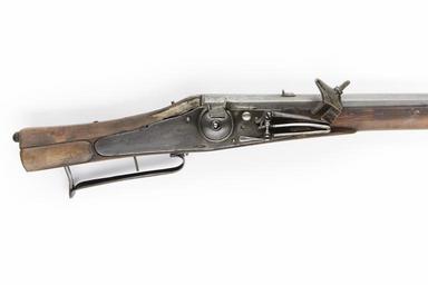 | Keywords: Hjullåsbössa, 1600 - Skoklosters slott - 90847.tif LSH artwork sv Åttkantig slätborrad pipa av stål Ståndsikte av stål knoppkorn av silver Tre piphäften Pipan ursprungligen brunerad <br/>Hjullås Blånerat låsbleck av tysk typ baktill rundat Kullrig hjulkapsel fasthållen med ring Mycket låg vertikal krutskärm Hane med lös underkäke Utan fingergrepp <br/>Hel stock av brunt trä Äldre tysk kolvtyp Bakplåt av horn stödkula av stål Sluten laddstocksränna Låsskruvar och pipstift med hjorthornsbrickor Näsband av ben Trågformig varbygel s k holsteinsk <br/>Saknar tillbehör <br/>Märkt 108 ovanför låsblecket stanstyp 5373 Rött lacksigill ovanför kolvlådan nött original caption Hjullåsbössa 1600 <br/> Nyckelord Hjullåsbössa Föremålsbild ca 1600 wood - steel - horn size mm 95 size mm 1305 pipa size mm 1575 SKO place of origin original filename sm_dig7526 33741 inventory number SKO 12703 90847 CC-BY-SA Erik Lernestål Wheellock firearms Muskets Photographs of weapons by Erik Lernestål Media contributed by LSH dim-with multiple size templates Media contributed by LSH 2016-05 |