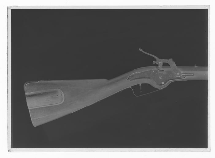 Keywords: Hjullåslodbössa, hanspännslås, signerat Koch, 1600-talets andra hälft, möjligen Johan Koch - Livrustkammaren - 1204-negative.tif Åttsidig fyraräfflad pipa av stål skålade bommar Rektangulärt svansskruvblad <br/>Riktmedel Inlaxat ståndsikte med u-formig skärm inlaxat spolformigt korn av mässing <br/>Fästning Tre häften Pipan fäst med krysskur samt tre pipstift av stål <br/><br/>Hjullås hanspännslås med plant låsbleck av västeuropeisk typ med fasade kanter på bakspetsen snidad dekor i form av en odjursmask I övrigt graverad dekor blomrankor bakom hjulet en ekorre framför hjulet signatur Koch Hjulet saknas ursprungligen fäst med studel kl 6 Fängpanna med fasetterad framkant låg rak krutskärm fästskruven saknas Platt konturerad hane i form av drake graverad dekor svansen upprullad rund hanskruven avbruten huvudet saknas Lös underkäke käkskruv med litet klotformigt huvud på svarvat skaft Långt svagt svängt fingergrepp avslutat med ekollonformig kula Kraftig fyrsidig hanfjäder med s-formigt nedåtsvängd övre arm under hanfoten Hjulaxeln förenad med slagfjädern saknas med kedjelänk Spänning med kedja som lindas runt hanaxeln Avtryckarstångens fästskruv och fjäder saknas <br/>Fästning Två låsskruvar en i kolvlådan <br/>Avtryckare med upprullad ände Avtryckarbleck med rundad ände <br/><br/>Helstock av valnöt med kolv av fransk typ med kindstöd och kolvlåda Snidad dekor vid kindstödets framände lister runt beslagen blad på kolvlådelocket Beslag av stål bakplåt med fågelhuvudliknande konturerad ryggflik två skruvar Kolvlådelockets ände stålbeslagen S-formigt svängt välvt sidbleck med i mitten en oval plåt Tre svarvade rörkor slät konturerad spets Näsband med bakåtriktad spets S-formig vinkelböjd varbygel bygeldelen svagt profilerad med mittlist framtill avslutad med treklöver bakre armen slät välvd med rundad avslutning två skruvar original caption ca other date - 1650 1679 walnut e3 - eldvapen - stock material valnöt - steel e1247 - eldvapen - pipa lås riktmedel och beslag material stål - brass e4 - eldvapen - riktmedel material mässing g 4410 size mm 190 size mm 732 pipa size mm 1135 LRK Nils von Lantingshausen von Höpken Löjtnant Koch anv e2 - eldvapen - lås; Johan Koch Koch anv e2 - eldvapen - lås; Johan Koch place of origin original filename LN_B09170_012050 47845 inventory number LRK 11183 1204 CC0 Hjullåslodbössa hanspännslås signerat Koch 1600-talets andra hälft möjligen Johan Koch - Livrustkammaren - 1204 tif <gallery caption Different images of same object > File Hjullåslodbössa hanspännslås signerat Koch 1600-talets andra hälft möjligen Johan Koch - Livrustkammaren - 9764 tif File Hjullåslodbössa hanspännslås signerat Koch 1600-talets andra hälft möjligen Johan Koch - Livrustkammaren - 1206 tif </gallery> |