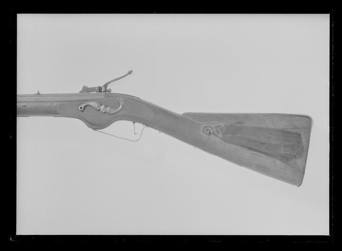 Keywords: Hjullåslodbössa, hanspännslås, signerat Koch, 1600-talets andra hälft, möjligen Johan Koch - Livrustkammaren - 9764.tif Åttsidig fyraräfflad pipa av stål skålade bommar Rektangulärt svansskruvblad <br/>Riktmedel Inlaxat ståndsikte med u-formig skärm inlaxat spolformigt korn av mässing <br/>Fästning Tre häften Pipan fäst med krysskur samt tre pipstift av stål <br/><br/>Hjullås hanspännslås med plant låsbleck av västeuropeisk typ med fasade kanter på bakspetsen snidad dekor i form av en odjursmask I övrigt graverad dekor blomrankor bakom hjulet en ekorre framför hjulet signatur Koch Hjulet saknas ursprungligen fäst med studel kl 6 Fängpanna med fasetterad framkant låg rak krutskärm fästskruven saknas Platt konturerad hane i form av drake graverad dekor svansen upprullad rund hanskruven avbruten huvudet saknas Lös underkäke käkskruv med litet klotformigt huvud på svarvat skaft Långt svagt svängt fingergrepp avslutat med ekollonformig kula Kraftig fyrsidig hanfjäder med s-formigt nedåtsvängd övre arm under hanfoten Hjulaxeln förenad med slagfjädern saknas med kedjelänk Spänning med kedja som lindas runt hanaxeln Avtryckarstångens fästskruv och fjäder saknas <br/>Fästning Två låsskruvar en i kolvlådan <br/>Avtryckare med upprullad ände Avtryckarbleck med rundad ände <br/><br/>Helstock av valnöt med kolv av fransk typ med kindstöd och kolvlåda Snidad dekor vid kindstödets framände lister runt beslagen blad på kolvlådelocket Beslag av stål bakplåt med fågelhuvudliknande konturerad ryggflik två skruvar Kolvlådelockets ände stålbeslagen S-formigt svängt välvt sidbleck med i mitten en oval plåt Tre svarvade rörkor slät konturerad spets Näsband med bakåtriktad spets S-formig vinkelböjd varbygel bygeldelen svagt profilerad med mittlist framtill avslutad med treklöver bakre armen slät välvd med rundad avslutning två skruvar original caption ca other date - 1650 1679 walnut e3 - eldvapen - stock material valnöt - steel e1247 - eldvapen - pipa lås riktmedel och beslag material stål - brass e4 - eldvapen - riktmedel material mässing g 4410 size mm 190 size mm 732 pipa size mm 1135 LRK Nils von Lantingshausen von Höpken Löjtnant Koch anv e2 - eldvapen - lås; Johan Koch Koch anv e2 - eldvapen - lås; Johan Koch place of origin original filename LN_B09171_012051 47845 inventory number LRK 11183 9764 CC0 Hjullåslodbössa hanspännslås signerat Koch 1600-talets andra hälft möjligen Johan Koch - Livrustkammaren - 9764-negative tif <gallery caption Different images of same object > File Hjullåslodbössa hanspännslås signerat Koch 1600-talets andra hälft möjligen Johan Koch - Livrustkammaren - 1204 tif File Hjullåslodbössa hanspännslås signerat Koch 1600-talets andra hälft möjligen Johan Koch - Livrustkammaren - 1206 tif </gallery> Wheellock musket images from Livrustkammaren Media contributed by LSH dim-with multiple size templates Media contributed by LSH unmatched creator Media contributed by LSH 2013-10 |