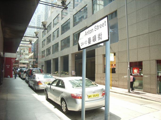 Keywords: HK WC Anton Street.jpg 晏頓道 Anton Street Wanchai Hong Kong A1 Wong East 2006-10-28 own assumed A1 Wong East~commonswiki Street signs in Wan Chai District Anton Street Wesley Hotel Hong Kong Outdoor car parks in Wan Chai District Pret A Manger in Hong Kong |